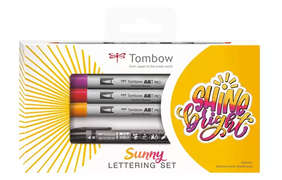 - Das Tombow Sunny Lettering Set enthält die Grundausstattung für den Einstieg ins Lettering mit den alkoholbasierten Markern ABT PRO. In einer Schritt-für-Schritt Anleitung erklärt die Künstlerin Katharina Arends (