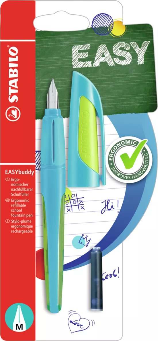 - Verpackung und Inhalt: 1er Blister - STABILO EASYbuddy mit M-Feder, inkl. 1 Standardpatrone (blau, löschbar)