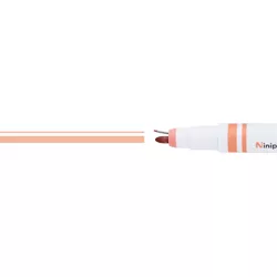 Im Gegensatz zu doppelseitigen Stiften, bei denen man zum Gebrauch die Seiten wechseln und die Kappe wieder aufsetzen muss, befinden sich bei Ninipie der Fineliner und die Rundspitze nebeneinander an einem Ende.
