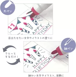 - Die dünne Spitze (ca. 0,5 mm) eignet sich für feine Buchstaben, Illustrationen und Verzierungen.