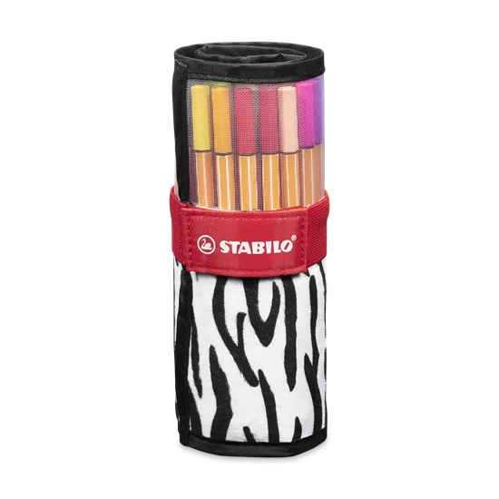- Verpackung und Inhalt: Fineliner STABILO® point 88® – 25er Rollerset im wilden Safari-Look (Zebra), mit transparentem Sichtnetz, Klettverschluss zum einfachen Öffnen und Verschliessen, Innentasche mit Reissverschluss.