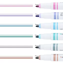 Im Gegensatz zu doppelseitigen Stiften, bei denen man zum Gebrauch die Seiten wechseln und die Kappe wieder aufsetzen muss, befinden sich bei Ninipie der Fineliner und die Rundspitze nebeneinander an einem Ende.