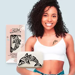 - Unser LaDot Stein mit Delphin-Motiv – ein mittelgrosser (5 x 2,5 cm) Keramikstempel, der Ihrem Stil einen Hauch von aquatischer Eleganz verleiht. Mit einer leichten Krümmung handgefertigt, sorgen diese Steine jedes Mal für den perfekten Abdruck. Die Vielseitigkeit der Motive ermöglicht es Ihnen, einzigartige Kombinationen für verschiedene Anlässe zu kreieren, sei es ein Tag am Strand, ein Urlaub, ein Festival oder eine Wochenendparty. LaDot Steine ist die perfekte Wahl und bietet eine grosse Auswahl an temporären Tattoos für jede Stimmung und jeden Moment. Diese temporären Tattoos bestehen aus