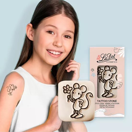 - Mit unserem LaDot-Stein mit dem bezaubernden Maus-Aufdruck können Sie und Ihre Kinder einen ersten Schritt in die temporäre Körperkunst wagen. Dieser grosse Stein (4 x 4,5 cm) aus unserer Produktrange ist aus hochwertiger Keramik gefertigt und hat eine handgefertigte, sanft abgerundete Form, die einen tollen Abdruck garantiert. Die Vielseitigkeit ist das Herzstück der LaDot Steine. Das speziell für Kinder entwickelte Motiv lässt sich mühelos mit anderen Motiven kombinieren oder mit Liner-Farbe ausfüllen und bietet so unendlich viele kreative Möglichkeiten. Ob am Strand, im Urlaub, auf einem Festival oder bei einer Kinderparty am Wochenende, diese Steine sind perfekt für jede Gelegenheit. Unsere temporären Tattoos sind nicht nur