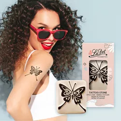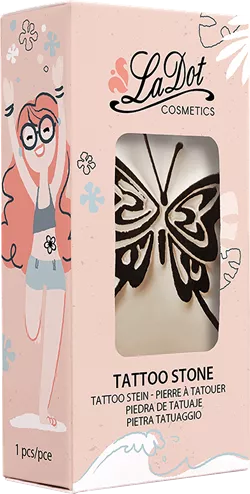 -                                         Der grosse LaDot Stein mit einem einzigartigen Schmetterlings-Abdruck - Verleihen Sie Ihrem Look mit unserem LaDot Stempel eine exklusive Note. Die Steine, gefertigt aus hochwertiger Keramik, werden mit präziser Handwerkskunst leicht gewölbt, um bei jedem Abdruck ein perfektes Ergebnis zu garantieren. Sie weisen eine Grösse von 4,5 x 4 cm auf. Die verspielte Schmetterlingsgrafik verleiht den Steinen eine charmante Ausstrahlung und macht sie besonders für Kinder oder Tierliebhaber attraktiv. Die Vielseitigkeit dieser Steine zeigt sich darin, dass verschiedene Motive mühelos miteinander kombiniert werden können. Egal, ob am Strand, im Urlaub, auf dem nächsten Festival oder der anstehenden Wochenendparty - die LaDot Stones sind für jeden Anlass geeignet. Wählen Sie ein neues Tattoo passend zu Ihrer Stimmung und Ihrem Stil. Unsere temporären Tattoos sind nicht nur