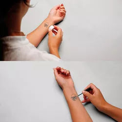 3. Tattoo stempeln: Den Stempel auf die Haut aufstempeln. Das Tattoo dann ca. 10 Sekunden lang trocknen lassen.