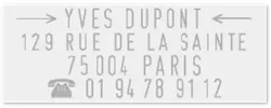 Ein Set beinhaltet einen Stempel aus robustem Kunststoff, der einen 38 x 14 mm Abdruck in schwarz stempelt, sowie eine Typenset-Einreihung und eine Pinzette.