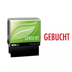 Lagertextstempel Green Line mit dem Wort GEBUCHT