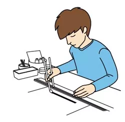 - Mit Führungsnut als Zeichnenhilfe: Verwenden Sie diese Option, wenn Sie eine Linie mit einem Marker oder Stift zeichnen möchten, ohne das Lineal direkt zu berühren (Die Zeichenhilfe ist nicht im Lieferumfang enthalten)