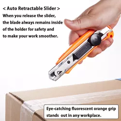 - CUTTER DE SECURITE AU TRAVAIL avec poignée orange fluorescent frappante.