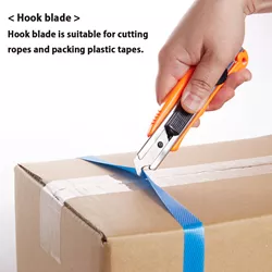 - la lame à couper peut être échangée contre une lame à crochet, qui convient pour couper des sangles et des cordes en plastique.