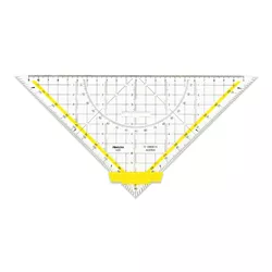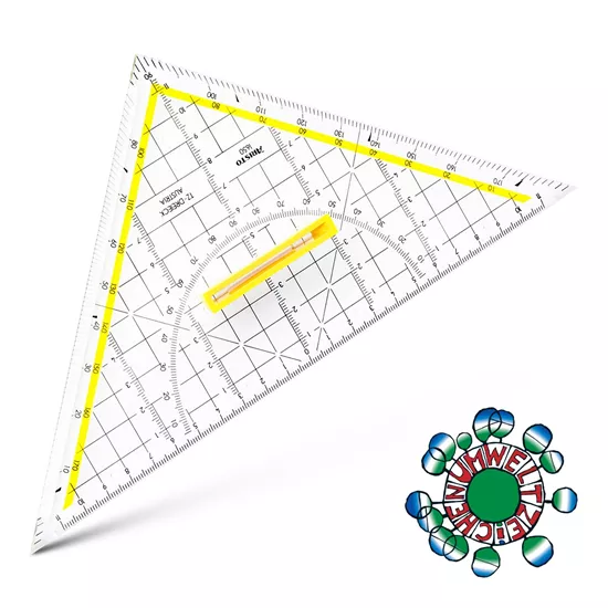 - Le Geodreieck® de 25 cm de long combine une règle graduée, un rapporteur, une règle symétrique et une règle parallèle en un seul instrument de dessin. Il est fabriqué en plexiglas hautement transparent et produit en Autriche. Le marquage en relief résistant à l'abrasion des graduations et des inscriptions ainsi que l'échelle angulaire sur fond jaune garantissent une utilisation précise et lisible à long terme. Des picots en encre garantissent un espacement net par rapport au papier. Le Geodreieck® est conforme aux normes ÖNORM A2134 et ÖNORM A2131 et est livré dans un emballage en carton certifié FSC et neutre en carbone. Il a également reçu le label environnemental autrichien. Équerre TZ 16 cm, poignée amovible, facette sur 3 côtés, picots encreurs