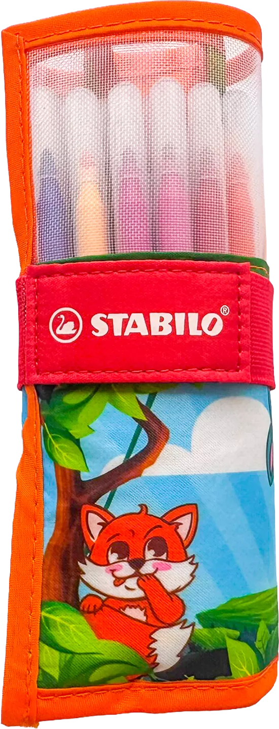 - Emballage et contenu : feutres Premium STABILO power – lot de 18 rollers au design Animal Vibes, couleur principale orange (édition CH), avec filet transparent, fermeture velcro pour une ouverture et une fermeture faciles, poche intérieure avec fermeture éclair.
