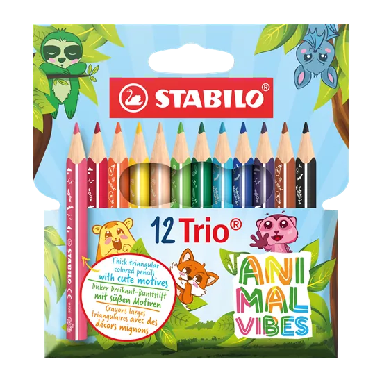 - Crayon de couleur triangulaire STABILO® Trio® épais court Étui au design Animal Vibes