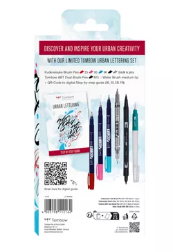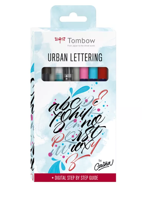 Le nouveau Tombow Urban Lettering Set est le mélange parfait de la calligraphie élégante et du lettrage moderne. Ce set, développé en étroite collaboration avec l'artiste espagnol Iván Caiña, est fait pour toi : il contient les Fudenosuke Brush Pens, qui conviennent particulièrement aux débutants, ainsi que le Tombow ABT Dual Brush Pen pour les utilisateurs avancés. Avec ton lettrage est encore mieux mis en valeur, tu peux utiliser le pinceau à réservoir d'eau inclus pour créer de beaux effets d'aquarelle. Pour créer des effets spéciaux. En outre, Iván a rédigé des instructions claires qui te permettront de te lancer immédiatement. Prépare-toi à faire passer ton lettrage au niveau supérieur!