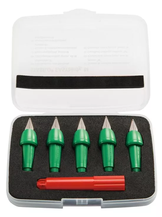 - Contenue et description du set: 5 plumes de remplacement, vert de grandeur M + clé spéciale (outil) pour la réglabilité individuellement de la plume gratute