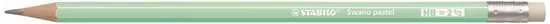 - Le crayon hexagonal STABILO Swano Pastel, vendu à l'unité, de couleur verte, avec gomme, dureté HB.