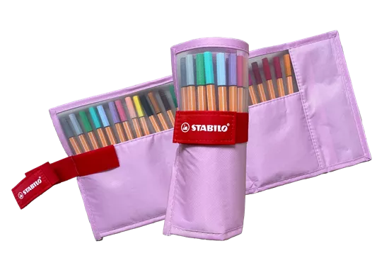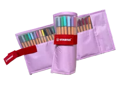 - Description du contenu et de l'emballage: STABILO point 88 - Étui à rouler de 25 stylos-feutres pointe fine dans des couleurs pastel tendance (édition CH), avec filet transparent, Velcro pour une ouverture et une fermeture faciles, poche intérieure avec fermeture à glissière
