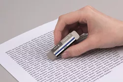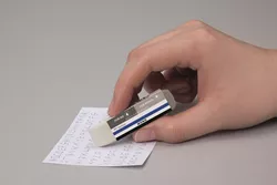 - Le côté clair efface le crayon, tandis que le côté plus sombre, contenant des microparticules de sable, convient à l'effacement de l'encre.