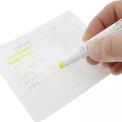 - Le surligneur à pointe biseautée a une couleur pastel douce, tandis que le feutre fin de 0,5 mm a une teinte légèrement plus foncée dans une couleur assortie ou contrastée.