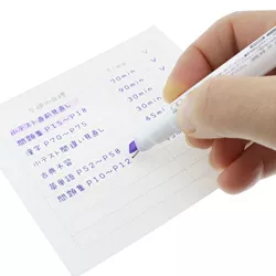 - Le surligneur à pointe biseautée a une couleur pastel douce, tandis que le feutre fin de 0,5 mm a une teinte légèrement plus foncée dans une couleur assortie ou contrastée.