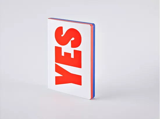-                                         Le YES - NO sert en fait à la bonne manipulation de ce carnet au design minimaliste : OUI marque le titre, NON le dos du livre. Bel effet secondaire : vous pouvez aussi l'utiliser comme carte de vote !