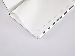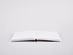 - Sans inscription, il ne serait pas aussi facile de distinguer le devant et le derrière, le haut et le bas. Parce que ce carnet est de conception puriste. L'équipement n'est pas puriste : 176 pages de papier de qualité supérieure, reliées en cuir blanc recyclé. Vous avez donc toujours raison. Comme ce livre.