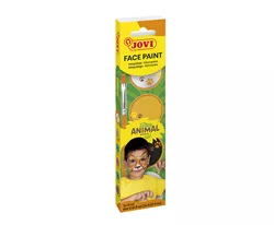 Le set FACE PAINT ANIMALS est un maquillage pour le visage de haute qualité, idéal pour créer des looks animaliers expressifs et des transformations créatives. Il comprend trois crèmes de maquillage de couleur blanc, orange et noir, parfaites pour réaliser des motifs classiques comme le tigre, le chat, le lion ou d’autres animaux. Le set est complété par une éponge de maquillage et un pinceau plat pour une application précise et uniforme. La crème Face Paint JOVI possède une texture à base d’huile qui s’applique facilement sur la peau, sans eau. Le format pratique en petits pots permet de prélever la couleur aisément avec l’éponge et garantit une utilisation propre et maîtrisée. La formule sèche rapidement, ne dessèche pas la peau et ne laisse pas de sensation grasse. Le maquillage s’enlève très facilement à l’aide d’une lingette humide, sans eau ni savon. Il est également sans parabènes et sans les principaux allergènes, ce qui le rend adapté aussi bien aux enfants qu’aux adultes. Idéal pour les fêtes d’enfants, les fêtes costumées, le carnaval, le Mardi gras ou Halloween.