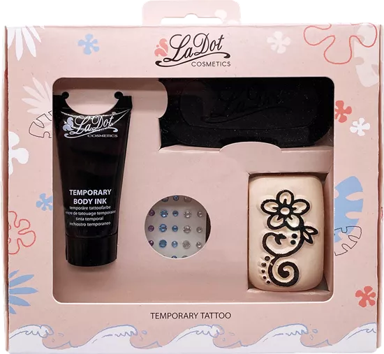 SET M - Avec le kit de tatouage LaDot M, tu reçois tout ce qui est nécessaire pour ton premier tatouage temporaire. - Le kit contient