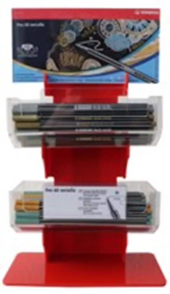 - Présentoir PET transparent vide avec 2 compartiments remplis avec les Pen 68 metallic suivants :